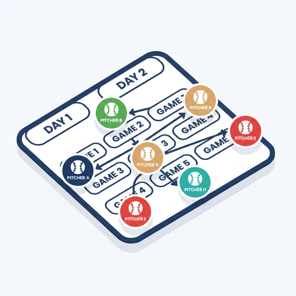 Who can pitch? Check pitch count rest days from last game. Make sure your pitcher is eligible. Track their count during the game so you don't exceed the limit.