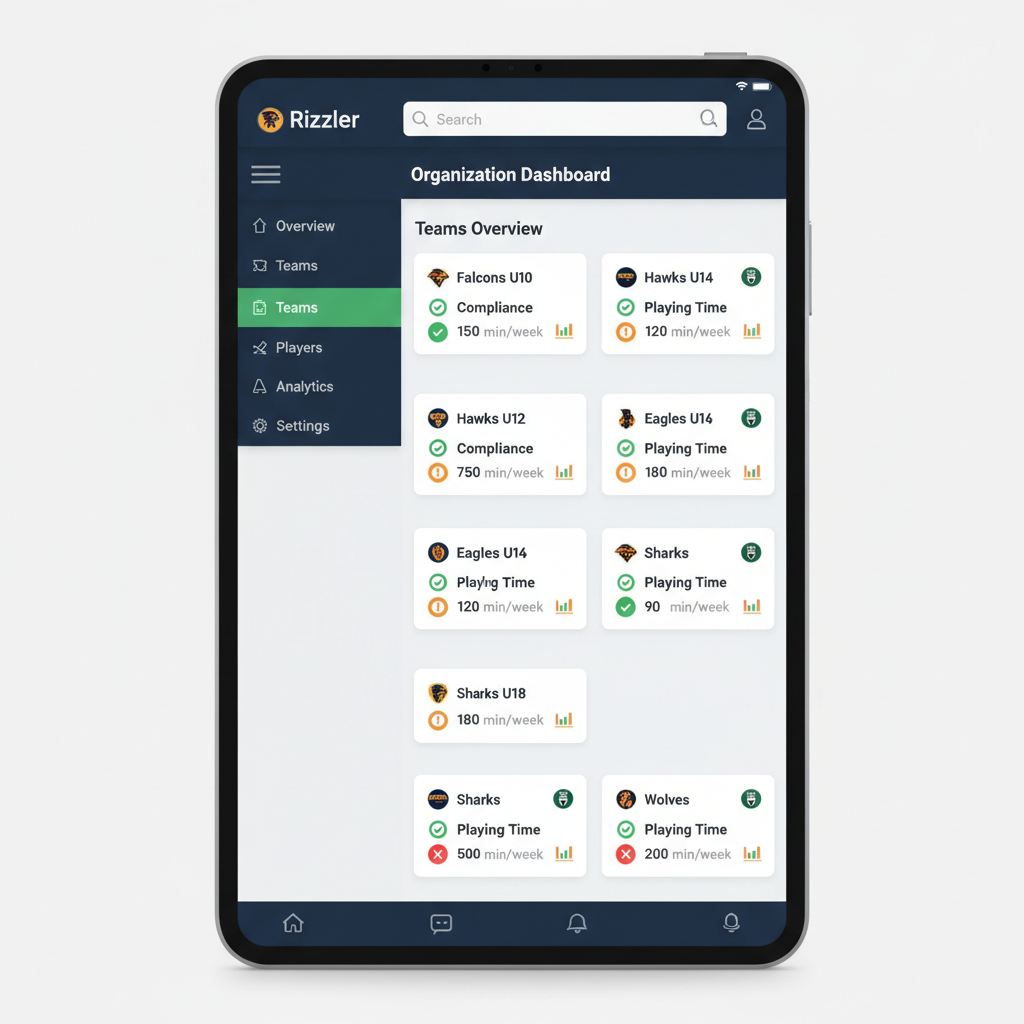 Limitations: Scoring is done by parents (not coaches), data doesn't feed into coaching tools. See the Rizzler vs GameChanger comparison.