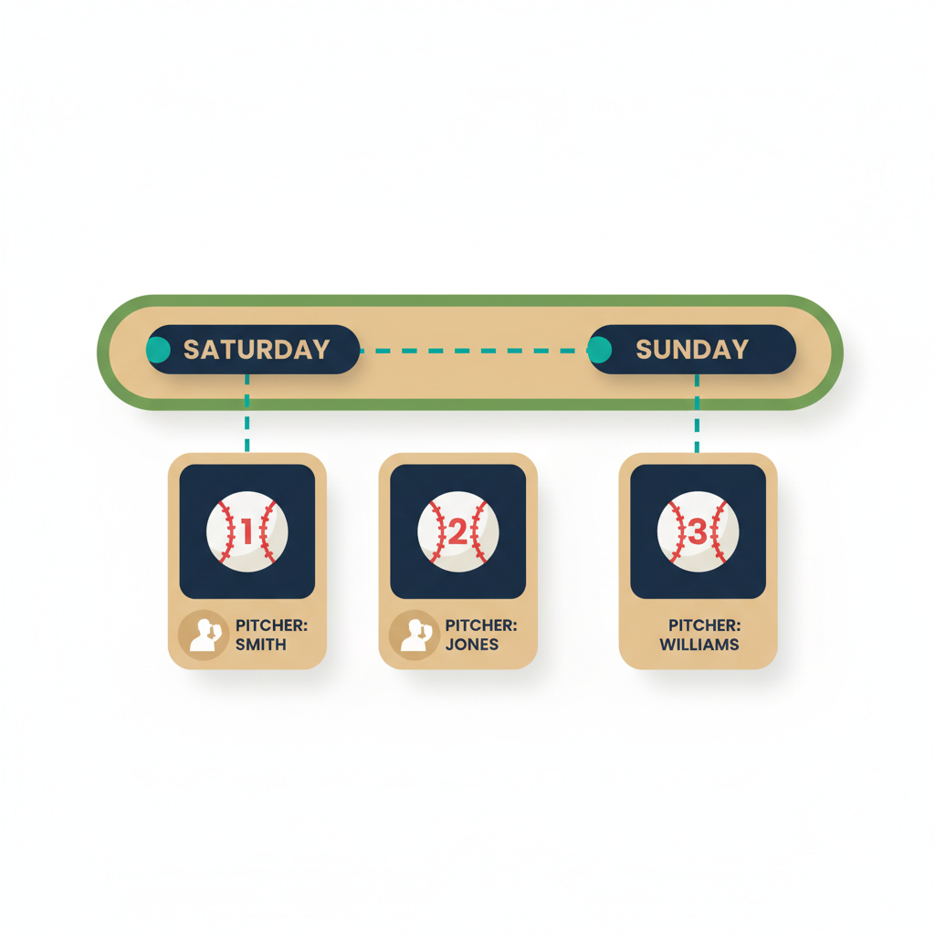 This means tournament planning requires careful pitch count allocation. If your ace throws 70 pitches on Saturday morning, they're unavailable until Thursday — well after the tournament ends. Managing pitching across a tournament →